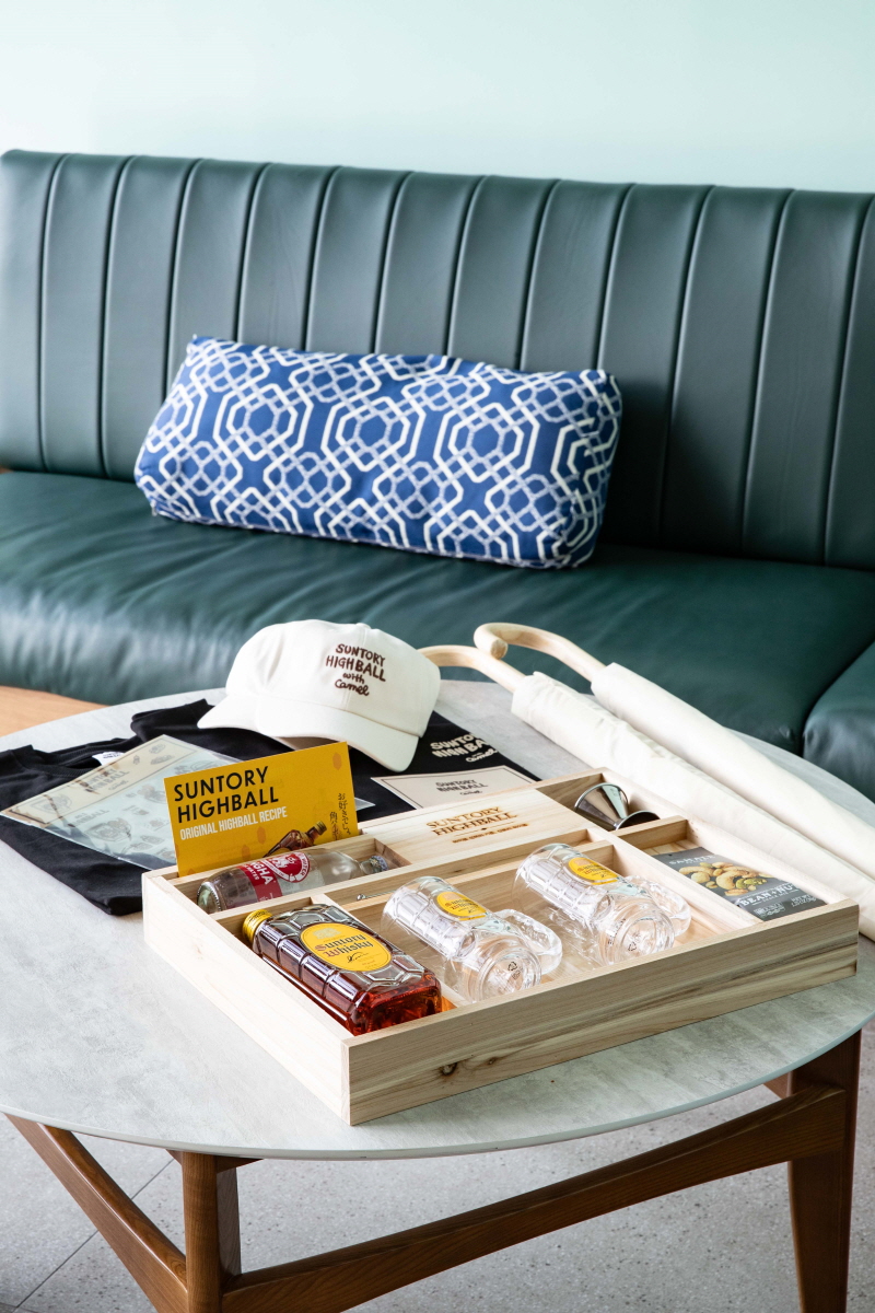 >빌라쥬드아난티 객실 내 투숙객이 직접 하이볼을 제조하여 마실 수 있도록 제공함과 동시에 CAMEL 콜라보 굿즈 4종 제공